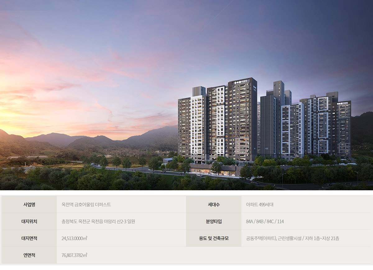 옥천에 처음으로 들어서는 금호어울림 브랜드 아파트로, 지역 주거 가치를 한 단계 끌어올리는 상징적인 단지입니다.